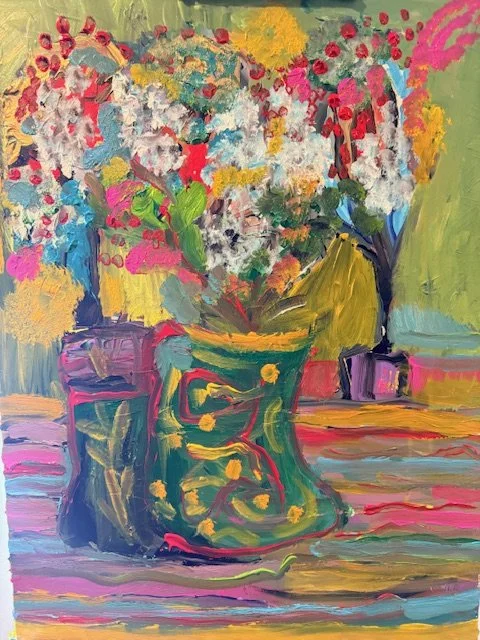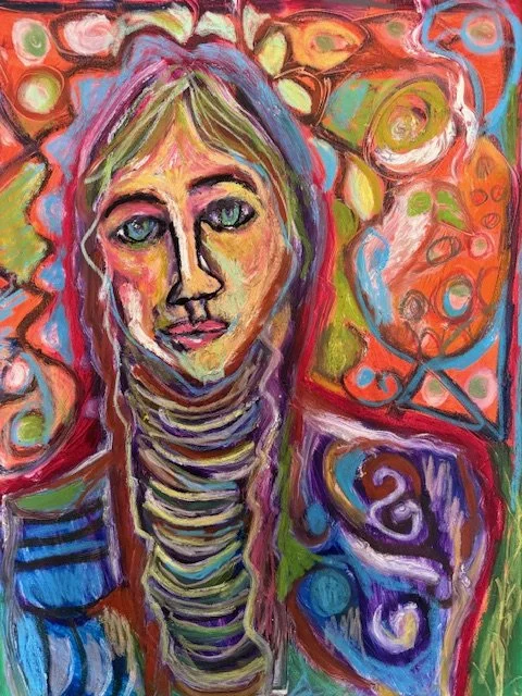 Working in abstract expressionism, Bridget Trowbridge’s art is a personal way of processing life and emotion. She draws inspiration from the energy of artists like Basquiat, Cy Twombly, and Francis Bacon. She says, “My work is a visual record of my life. I create mixed media pieces using oil pastels, charcoal, chalk, graphite, and paint on wood panels and canvas. The subjects shift between pop culture, Oklahoma places, florals, and figures inspired by experiences that have shaped my life.”