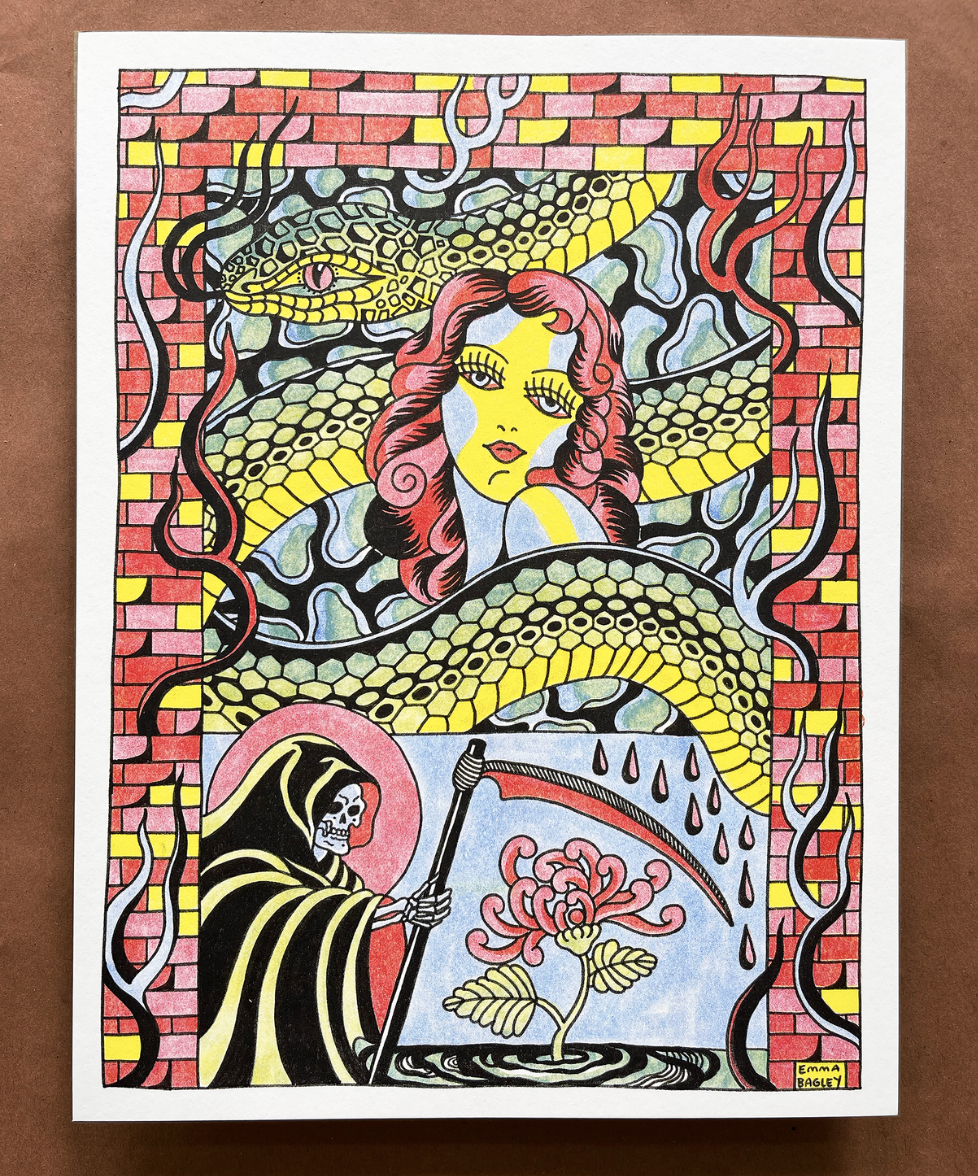In the Library Gallery will be the opening reception of Skeletons, Snails, and Sorcerers from artist Charlie Street. “My work is heavily inspired by the intricate and macabre woodcuts and engravings of the late Middle Ages and Renaissance. While prints from that era often centered on religious themes or life’s hardships, I try to depict more fantastical and surreal subjects.”